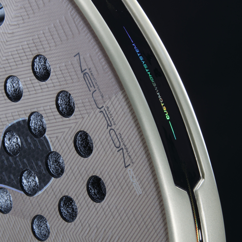 De Neuron 02 2026 is voorzien van Hesacore grip en Vibradrive, die samen zorgen voor minder belasting van de arm en meer gripzekerheid. Dankzij het apart verkrijgbare Custom Weight-systeem kun je gewicht en balans aanpassen aan je voorkeur, zodat het racket perfect aansluit bij jouw speelstijl.