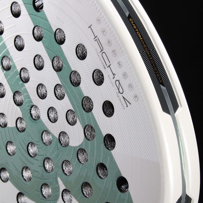 Ondanks zijn agressieve karakter voelt de Hack 04 2026 comfortabel in de hand. Ease Vibe-dempers, Hesacore grip en Vibradrive verminderen trillingen en beschermen je arm tijdens intensieve rally’s. Met het apart verkrijgbare Custom Weight-systeem kun je gewicht en balans aanpassen, zodat het racket altijd precies aansluit bij jouw speelstijl.