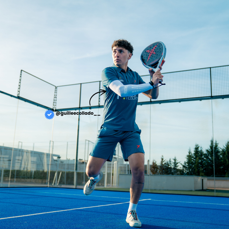 De sleeve werkt via gerichte compressie op de anatomisch kritieke zones van elleboog en onderarm. Deze compressie stabiliseert pezen en spieren die bij herhaalde armbelasting blootstaan aan schadelijke trillingen, waardoor de kans op pijnlijke ontstekingen, inclusief epicondylitis (tennis- of padelarm), merkbaar afneemt. Het geïntegreerde Tape System werkt samen met de compressie om de armspieren te omhullen, spierdislocatie te minimaliseren en een vlotte regeneratie van de spierfunctie te ondersteunen.