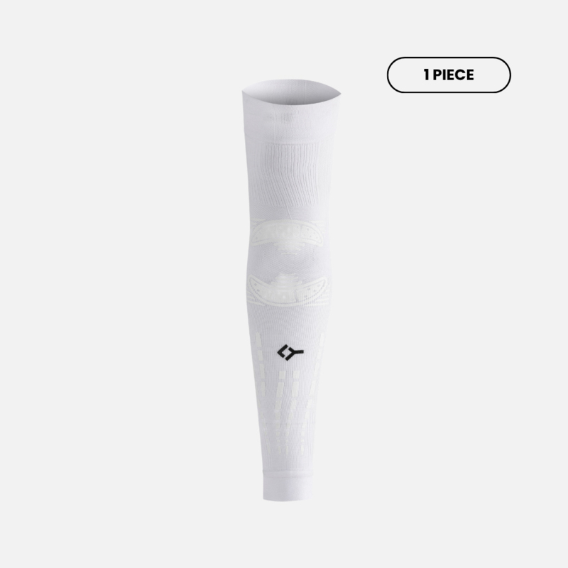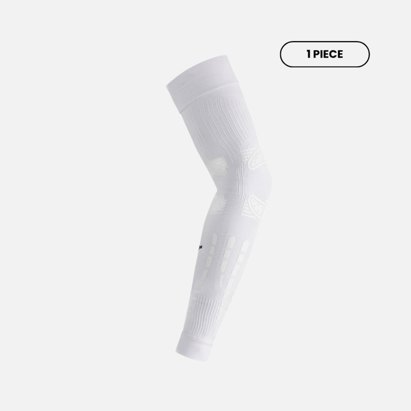 De tapeapplicaties bevinden zich aan de buitenzijde van de sleeve, zonder interne filamenten. Dit minimaliseert wrijving en verhoogt het draagcomfort, ook bij langere wedstrijd- of trainingsessies. De sleeve is samengesteld uit 50% polyester, 41% polyamide en 9% elastan, aangevuld met 100% siliconen applicaties voor de functionele zones.